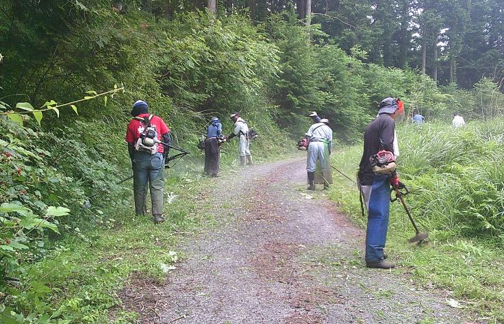 作業には、役員26人が参加し、山頂までの林道や遊歩道、展望台付近の草刈りをはじめ、トイレ掃除などを行い、初夏の草花を見に訪れる地区内外の皆さんに安心して来ていただけるよう整備を行いました。