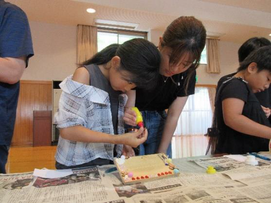 7月6日、城川小学校3年生の学P行事が遊子川地域づくり活動センターで行われ、児童と保護者30人が、フォトフレーム(写真立て)づくりを体験しました。
