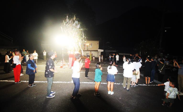 8月14日、遊子川地区盆踊り大会が開催され、今年は遊子川地域づくり活動センター駐車場を会場に住民や帰省客など約10人が来場し、盛会に開催することができました。