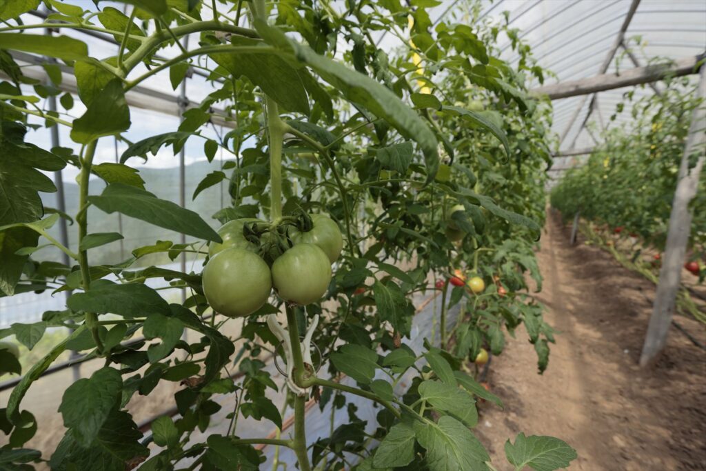 晩秋の青トマトを収穫して圃場(ほじょう)の片づけ。